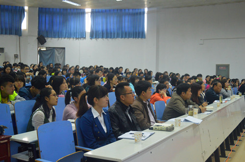 受聘仪式结束后,杨玮斌教授为师生们做了题为“走向市场---口译的理论与实践”的学术报告。报告中,杨玮斌教授从翻译的发展历程、当代口译的发展现状、译员的地位及影响、口译实践的评价体系、语言处理基本法则、口译实践的非语言性因素六个方面详细介绍口译的发展历程及其发展趋势。同时他还向同学们提出“创造性介入”和“大道至简”的观点,要求同学们在进行口译时,端正职业态度、注意行为表现、提升沟通能力,将自己打造成一个合格的口译者。杨玮斌教授风趣幽默的语言,深入浅出的讲解,赢得了师生们的阵阵掌声。