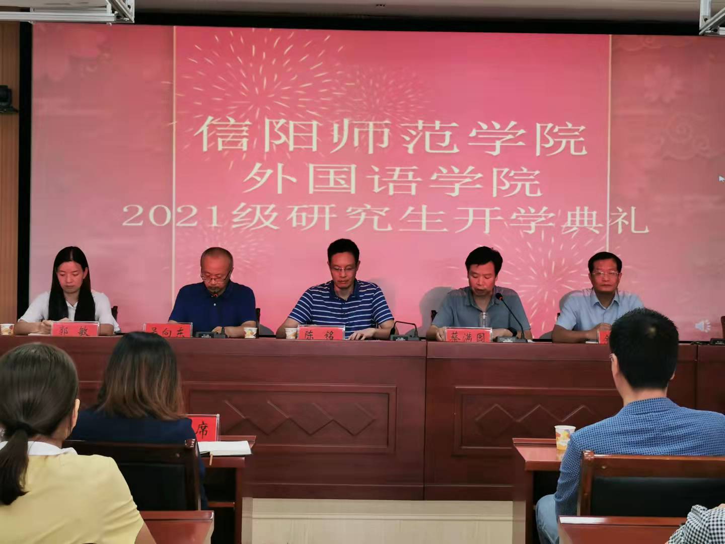 9月27日,beat365在线体育官网登录入口2021级研究生新生开学典礼在人文楼607会议室举行。党委书记陈铭、院长蔡满园、副院长吴向东、余永锋、郭敏与beat365在线体育官网登录入口导师和全体2021级研究生新生参加了典礼。典礼由吴向东主持。