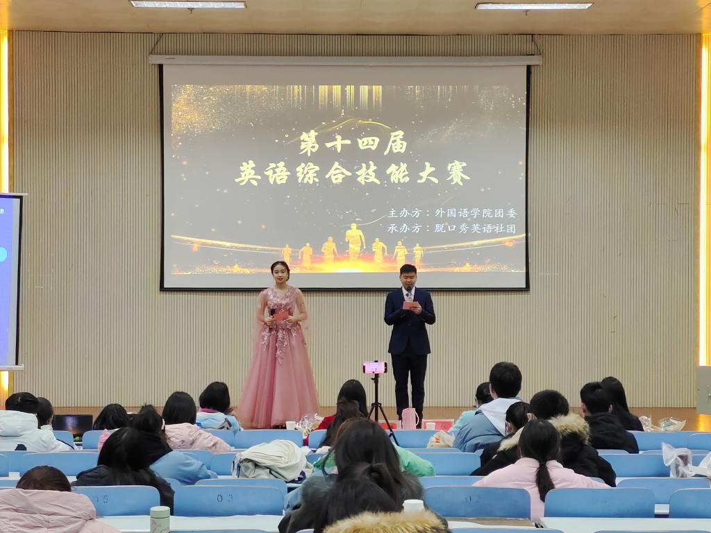 12月2日晚,beat365在线体育官网登录入口在人文楼报告厅成功举办第十四届英语综合技能大赛。学院副院长郭敏,专任教师余运伟、赵勤、杨红,团委书记孔宪巍作为大赛评委出席此次比赛,500余名学生在线下线上共同观看比赛。