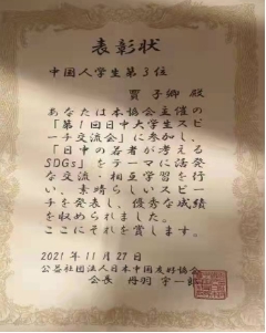 beat365在线体育官网登录入口学子在中日大学生演讲比赛中获奖