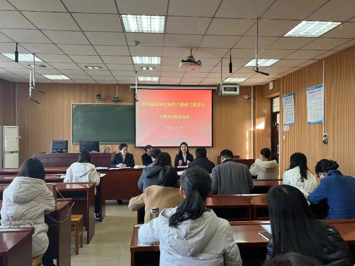 为推进英语专业本科人才培养方案修订工作,做好英语本科人才培养方案的顶层设计,不断提升人才培养质量,英语系主任崔淑丽从培养方案的修订依据、指导思想、基本原则和修订重点等方面汇报了相关修订工作的具体内容。崔主任指出,培养方案是学校实现人才培养目标和基本规格要求的总体计划和实施方案,是学校组织和管理教育教学过程、实施教育教学质量监控和评价的主要依据。2023版本科生培养方案秉承开放包容,做到从上到下重视、从课内到课外延伸、刚性与柔性结合,与时俱进。与会领导、老师从不同层面、不同角度充分发表意见,提出了修改意见和建议。