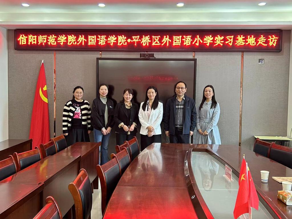 为进一步加强实习基地建设,更好地提升外语专业师范生实习实践实效,2023年4月14日上午,beat365在线体育官网登录入口副院长郭敏率队走访平桥区外国语小学,开展实习基地建设工作推进座谈会。平桥区外国语小学校长陆红、教导主任魏开芳、英语教学组部分教师代表参加了此次座谈。