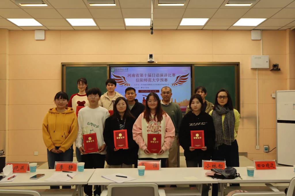 3月14晚,河南省第十届日语演讲比赛beat365在线体育官网登录入口预赛在人文楼603教室举行。日语系吴恒、李静(博士)、薛晓燕等5位教师及学生代表参加了此次活动。