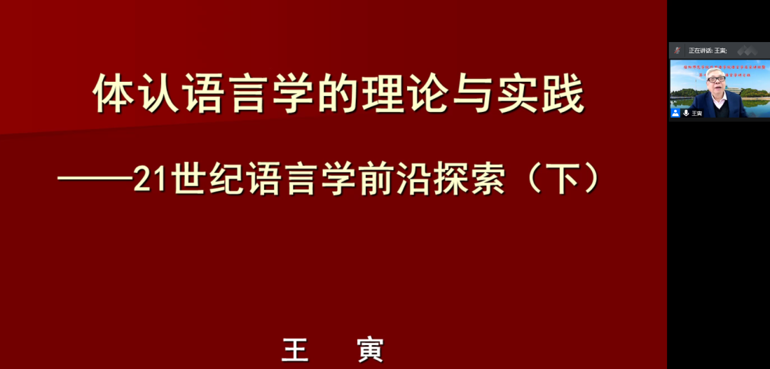 为进一步营造语言研究的学术氛围,加强学术交流,提高广大师生的学术兴趣与学术水平,推动学科发展。2020年12月11日-14日信阳师范学院beat365在线体育官网登录入口以“体认语言学理论与实践” 为主题开展语言学名家讲坛暨第十二期体认语言学讲习班活动。研习班邀请四川外国语大学博士生导师王寅教授做系列学术报告,分别以“体认语言学的理论与实践”、“体认语言学在翻译与英语教学中的应用”、“体认语言学与英汉词汇”等为主题探讨了体认语言学的前沿与现状以及体认语言学理论在教学中的应用。讲座采用现场和腾讯会议线上结合的方式开展,现场50余名师生和线下300余名听众共同聆听了讲座,每场讲座结束后,王寅教授都详细解答了与会师生和线上听众的问题。不少师生表示讲座提升了他们语言研究的兴趣和积极性,对营造我院学术研究氛围起了重要推动作用。