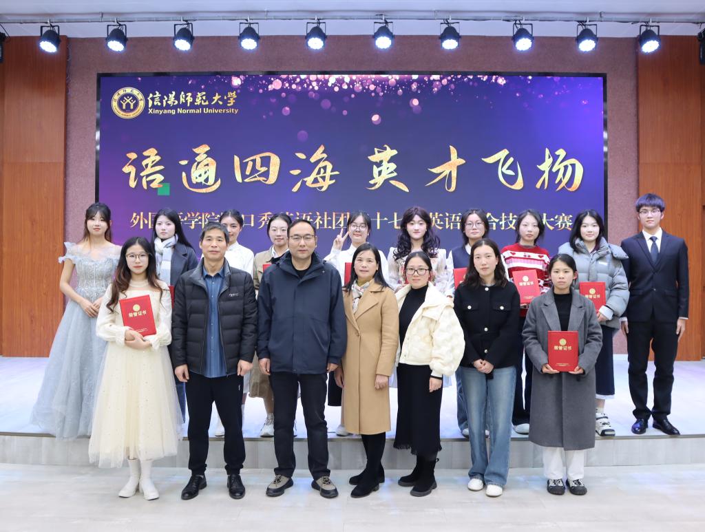 11月29日晚,beat365在线体育官网登录入口脱口秀英语社团在五育大讲堂举办第十七届“语通四海 英才飞扬”英语综合技能大赛决赛。蔡威、刘伟、王梦中、陈春雨、魏旭老师担任本场比赛的评委,师生代表200余人共同观看比赛。