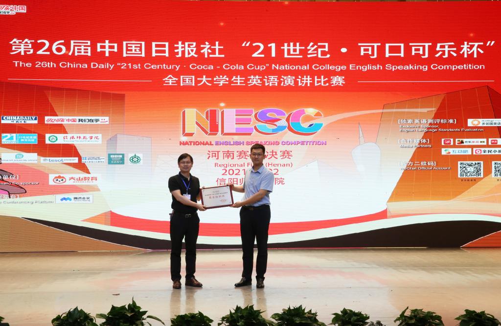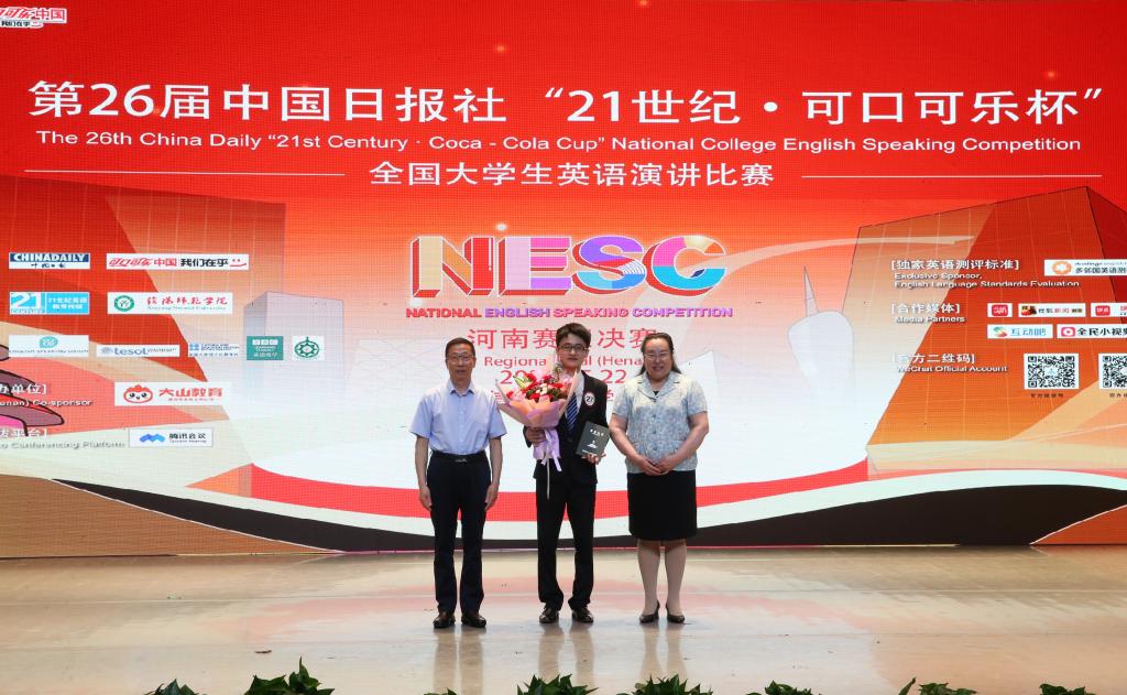 5月22日,由中国日报社主办、中国日报社21世纪英语教育传媒和我校承办、大山教育集团协办的第26届中国日报社“21世纪·可口可乐杯”全国英语演讲比赛河南赛区决赛在艺术楼音乐厅举行。校党委副书记郜火星,中国日报社21世纪英文报河南工作站站长、大赛组委会主任杜琛,大山教育集团联合创始人崔新年应邀出席观看比赛。beat365在线体育官网登录入口师生代表共300余人观看了比赛。