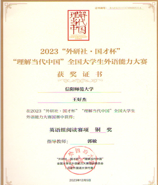 我校学子在2023“外研社·国才杯”“理解当代中国”全国大学生外语能力大赛系列赛事中荣获佳绩