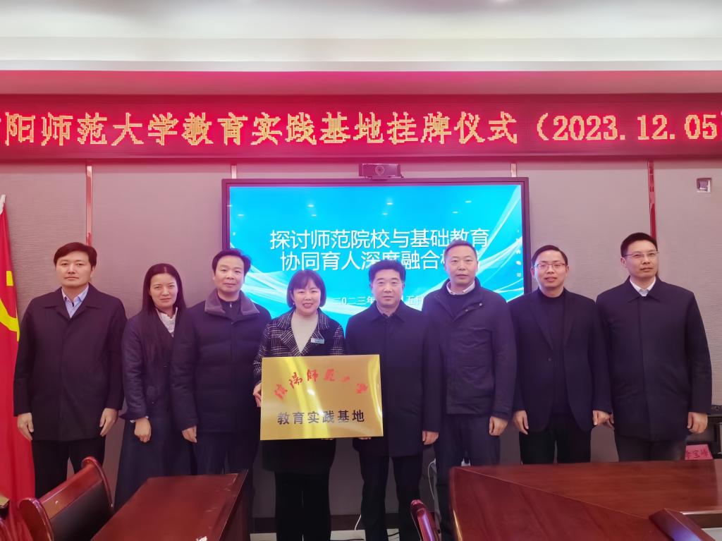 2023年12月5日下午,beat365在线体育官网登录入口与平桥区第五小学举行教育实践基地挂牌仪式。平桥区政法委书记程岗、平桥区教体局局长彭传涛、我校副校长江玉安、教务处副处长周学勇、beat365在线体育官网登录入口党委书记陈铭、院长蔡满园、副院长郭敏及部分师生代表参加了本次挂牌仪式。仪式由平桥区第五小学教务主任魏开芳主持。