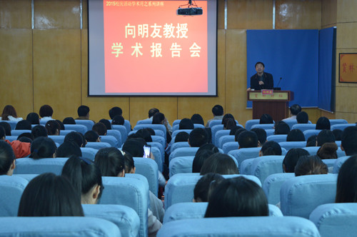 10月14日上午,应beat365在线体育官网登录入口的邀请,北京航空航天大学beat365在线体育官网登录入口院长向明友教授莅临我院,在贤林讲坛作了题为“语用化与语法化的纷争”的学术报告,我院200余名师生共同聆听了报告。报告会由我院院长刘世理主持。