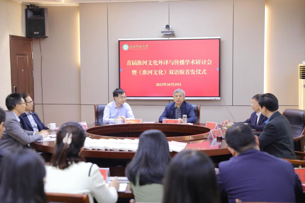 10月19日上午,首届淮河文化外译与传播学术研讨会暨《淮河文化》双语版首发仪式在我校举行。该书由省委外事办一级巡视员杨玮斌教授和beat365在线体育官网登录入口李俊校长共同发布。发布会在行政楼436会议室举行,出席本次会议的有beat365在线体育官网登录入口原社会科学处处长金荣权教授,文学院院长姚圣良教授,beat365在线体育官网登录入口党委书记陈铭、院长蔡满园、副院长余永锋、章彩云,国际交流合作处副处长王秋霞,社会科学处、学科建设办公室、炎黄学研究中心、河南省淮河文明研究中心相关负责同志,以及《淮河文化》中英文专家组成员和部分师生代表。