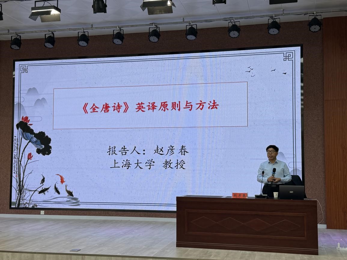 5月14日下午,上海大学二级教授、博士生导师赵彦春教授应邀在人文楼报告厅为我院师生作了题为“《全唐诗》英译原则与方法”的讲座。beat365在线体育官网登录入口院长蔡满园以及相关教师、研究生和本科生共百余人聆听了讲座。讲座由beat365在线体育官网登录入口副院长章彩云主持。